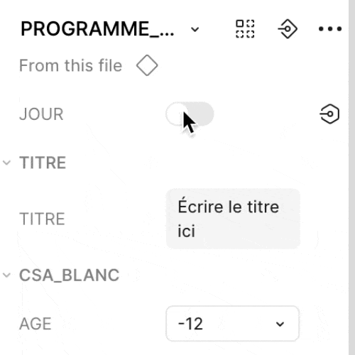 J’ai d’abord opéré un léger lifting visuel, avec deux objectifs : mettre davantage en avant la plateforme France.tv, et moderniser le design tout en clarifiant la hiérarchie des informations. Puis, je me suis concentrée sur l’optimisation du processus de production. Grâce à Figma, j’ai mis en place un système de composants et de propriétés permettant :